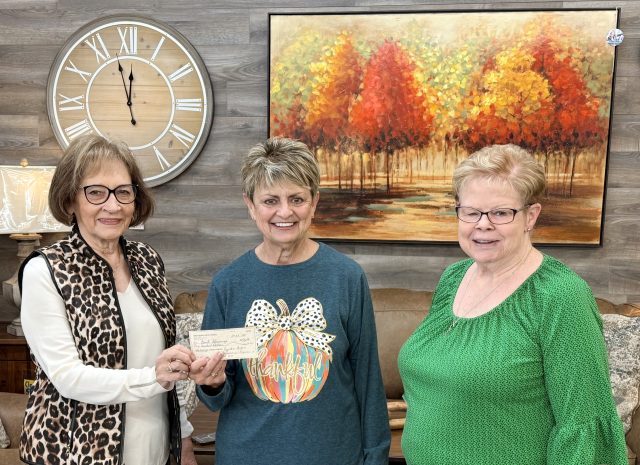 The Piney Woods Quilt Festival Committee recently made a $500 donation to Paula Carter with the Book Blessings ...